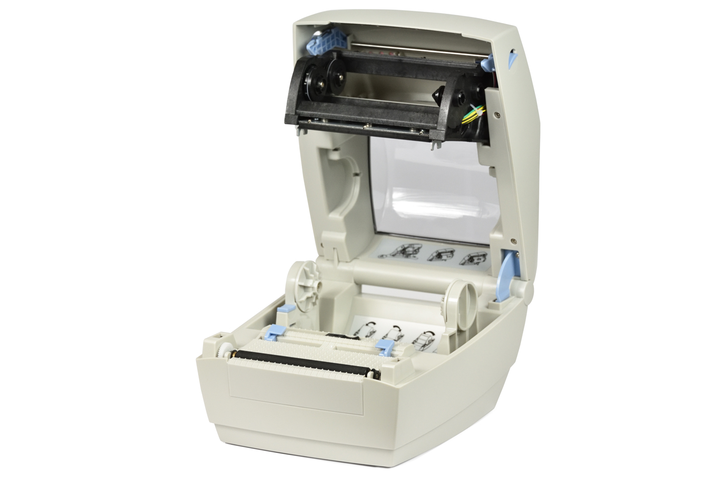 Этот принтер печатает при помощи нагревания риббона на термотрансферных этикетках. С этим штрих-коды становятся более долговечными. Также может как и обычный термопринтер работать, если не вставлять риббон.
